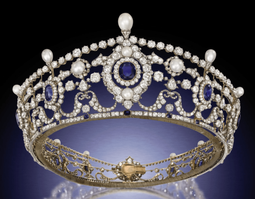 The Portland antique sapphire, diamond, and natural pearl tiara