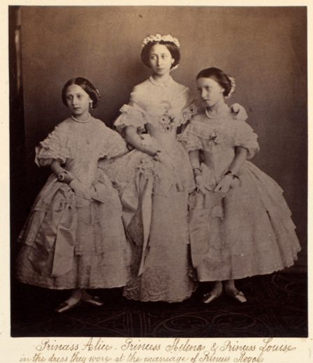 Vicky’s siblings were also in attendance with ‘the 3 girls in pink satin trimmed with Newport lace, Alice with a wreath of cornflowers & marguerites, the 2 others only with sprays of them, in their hair. The 4 boys wore highland dress‘. The baby of the family, Princess Beatrice, was less than a year old at the time, so was not in attendance at the ceremony.