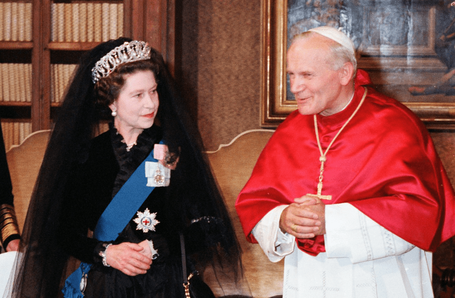 The queen continued to wear this tiara on state occasions throughout her lengthy reign. She wore it to meet Pope John Paul II in 1980: