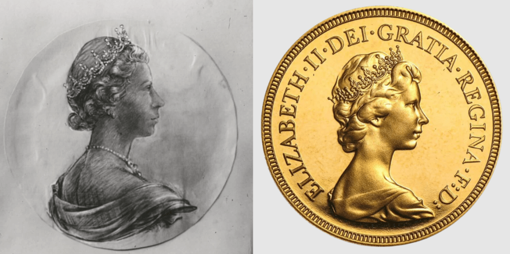 In 1968, Sculptor Arnold Machin designed the royal portrait to be used on the UK’s new decimalised currency.